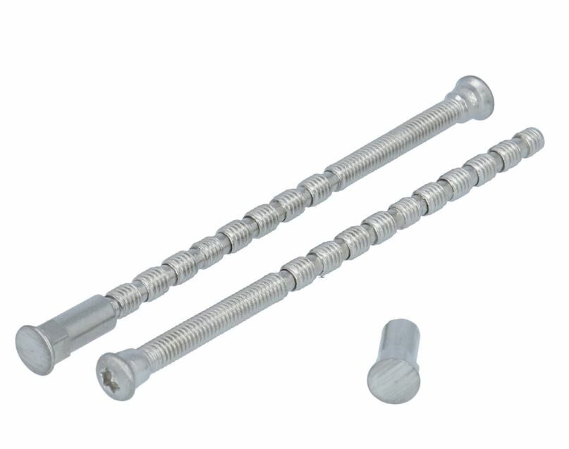 Je kan dus ter plekken beslissen hoelang de bout dient te worden. De afgeknipte bout kan direct in de huls worden gedraaid, omdat het schroefdraad niet wordt beschadigd.