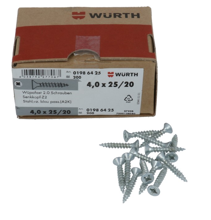 200 stuks 4.0 x 25 mm spaanplaatschroef verzonken PZ-kruiskop