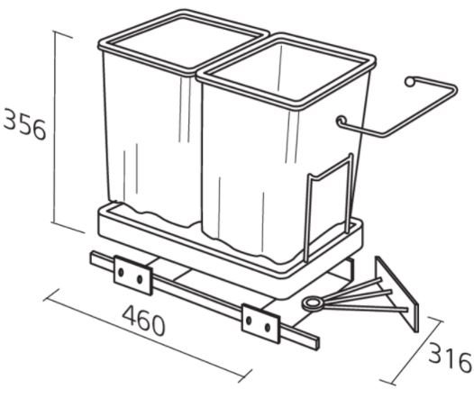 Geleverd met 2 afvalemmers en 2 individuele deksels