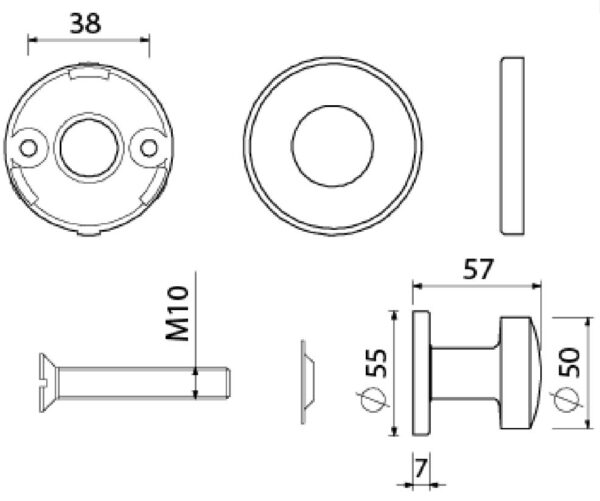 Bij deze set rozetten worden 2x patentbout en 2x huls meegeleverd. (zie afbeelding 3)