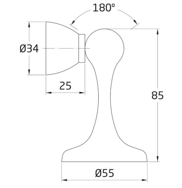 Werkt goed onder iedere hoek doordat de magneet in het stootblokje zit en niet in de arm (zie 75mm versie die ik afraad).