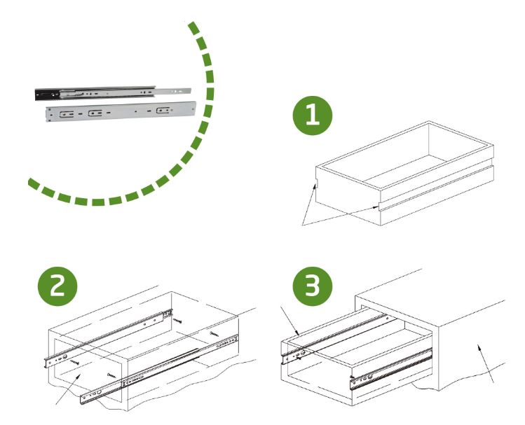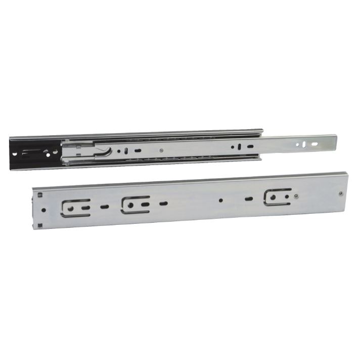 Volledig uittrekbare metalen schuifgeleider met stalen kogels en zelfsluitend.