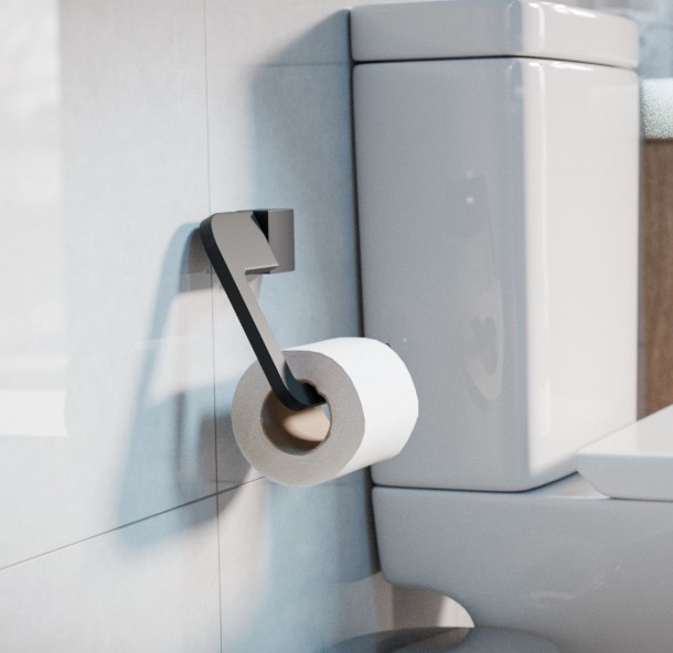 Zeer moderne zamak toiletrolhouder. Dit model wordt met schroeven aan de muur bevestigd, wat zorgt voor een stabiele en duurzame bevestiging. Met stalen steun. De gelakte afwerking voorkomt corrosie en roest. Word geleverd inclusief bevestigingsmateriaal.