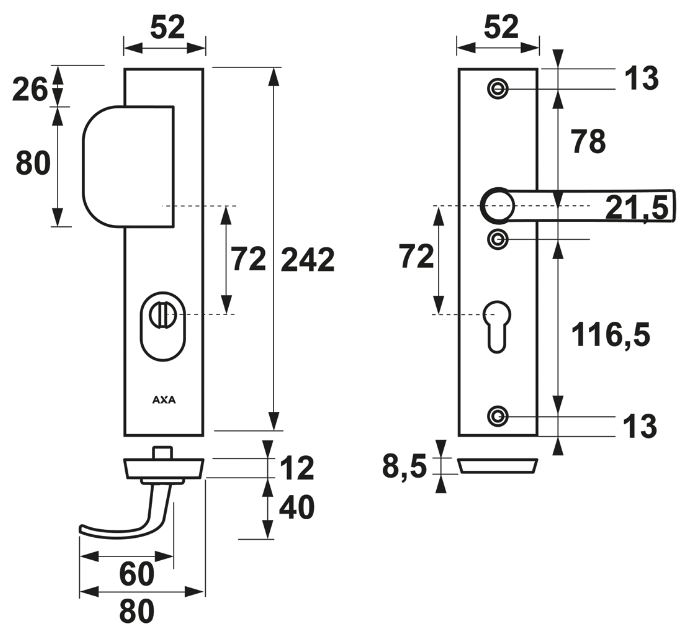 AXA Basic veiligheidsbeslag PC72 SKG3 met kerntrekbeveiliging D-greep/kruk