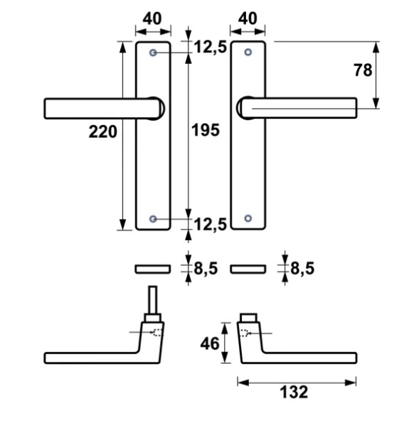 AXA binnendeurbeslag Edge blind met deurklink Riga aluminium F1