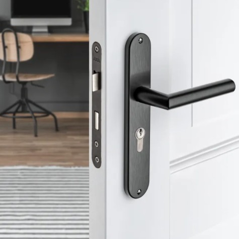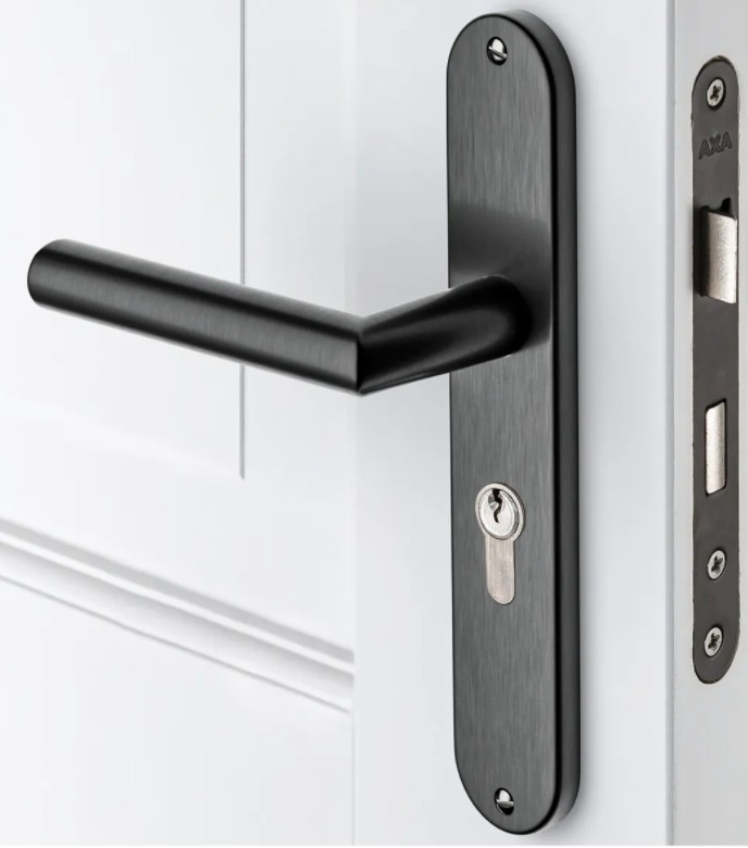 AXA binnendeurbeslag Oval PC55 met deurklink Milan aluminium zwart