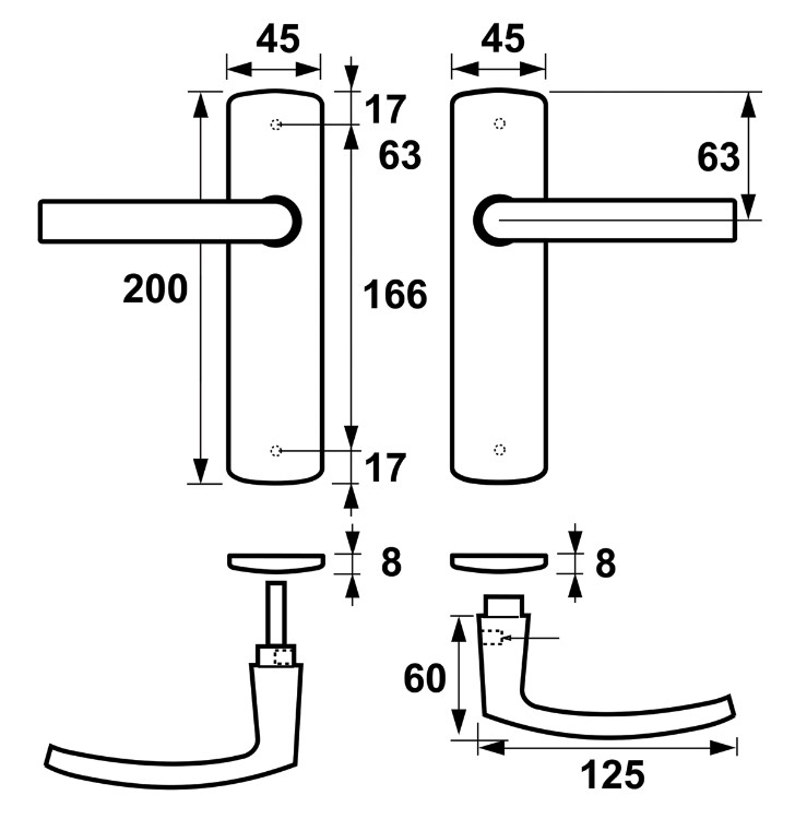 Universeel toepasbaar op deuren van 38 tot 42 mm dik