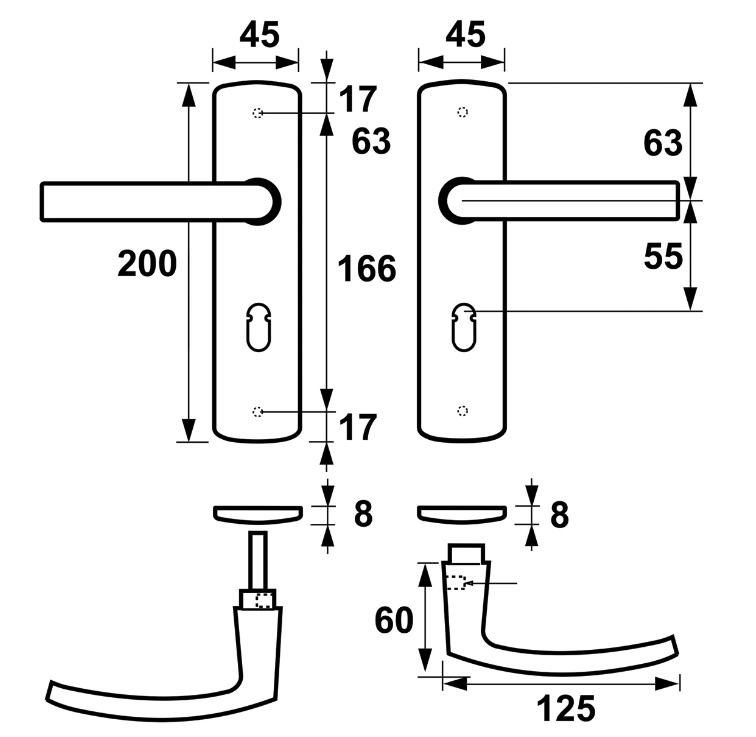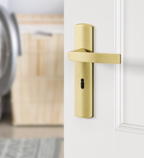 Ergonomisch vormgegeven deurklink en schilden.
