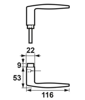 Ergonomisch vormgegeven deurklink en schilden.