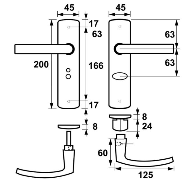 Toepassing: voor buiten- en binnendeuren, 38 tot 42 mm dik.