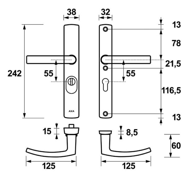 AXA Curve Plus smal veiligheidsbeslag PC55 met kerntrekbeveiliging kruk/kruk SKG3 zwart