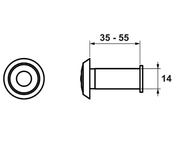 Standaard toepasbaar op deuren van 35 tot 55 mm dik