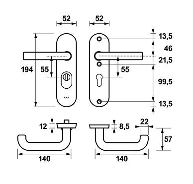 AXA Oval Plus Kort veiligheidsbeslag PC55 SKG3 met kerntrekbeveiliging kruk/kruk