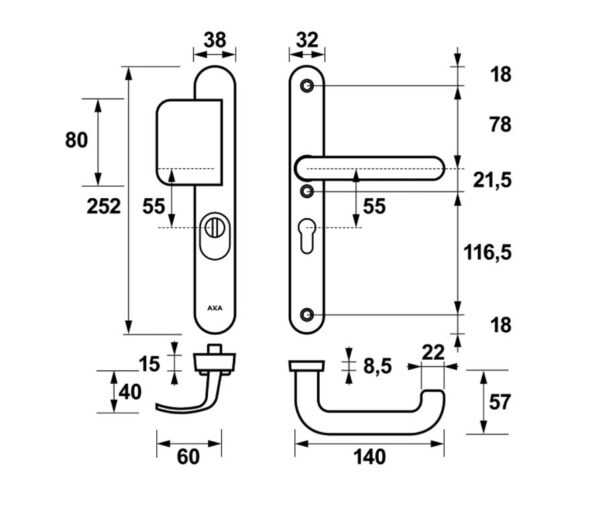 AXA Oval Plus smal veiligheidsbeslag PC55 SKG3 met kerntrekbeveiliging D-greep/kruk zwart