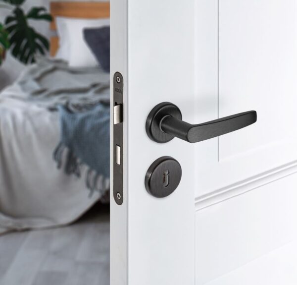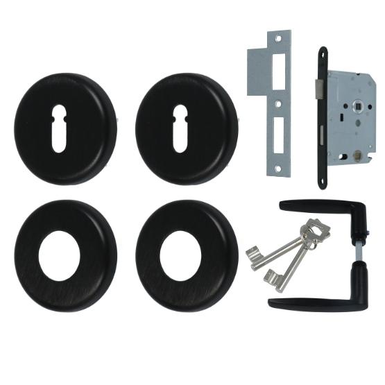 AXA set binnendeurbeslag ronde rozet + dag-nachtslot klavier zwart