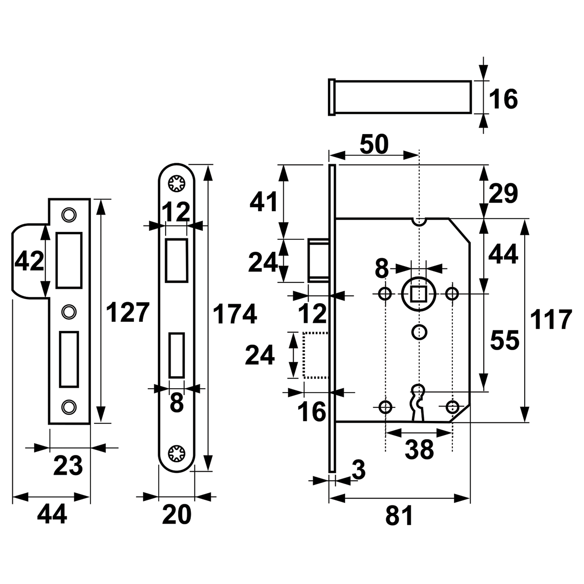 | Bevestigingsmaterialen: | – M4 x 38 mm patentbout: 4 stuks – M4 x 22 mm bus: 4 stuks |