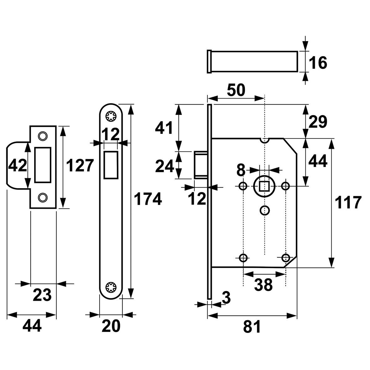 Bevestigingsmaterialen: | – M4 x 38 mm patentbout: 2 stuks – M4 x 22 mm bus: 2 stuks |