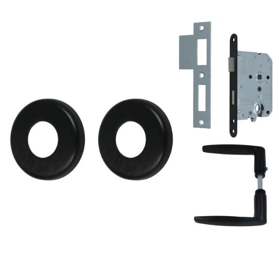 AXA set binnendeurbeslag ronde rozet + loopslot zwart