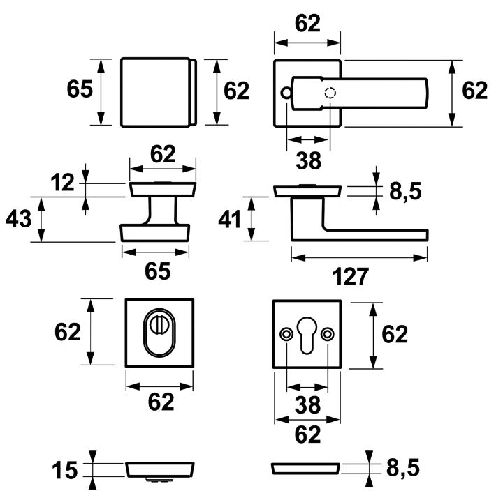 - Standaard toepasbaar op deuren van 38 tot 42 mm dik