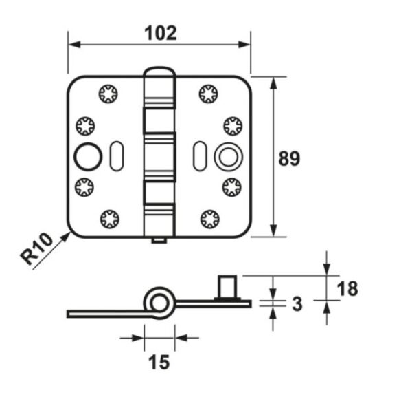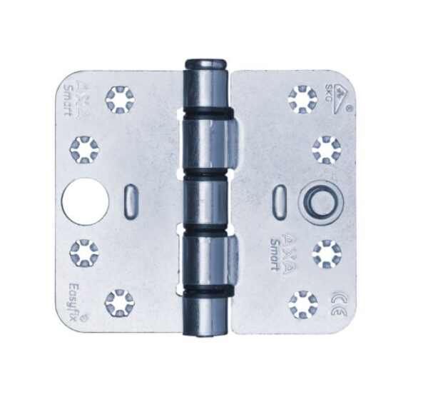 Lichtlopend, inbraakwerend, stalen AXA Smart Easyfix® veiligheids schijflagerscharnier met een extra hoog draagvermogen en ronde hoeken.