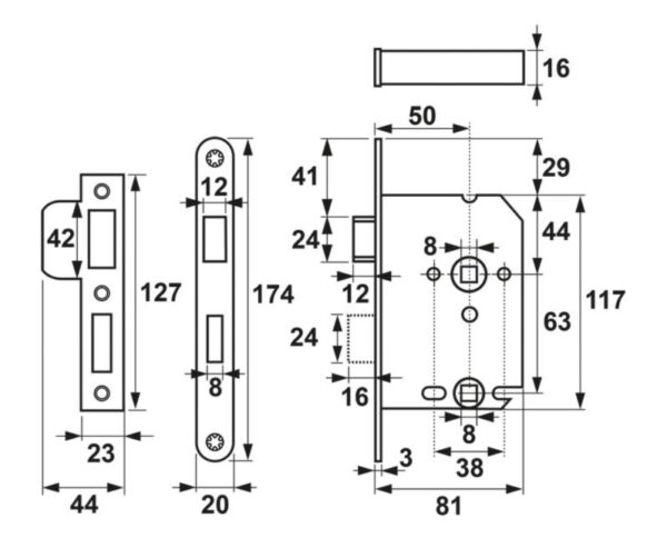 AXA toilet-badkamerslot WC63/8 met zwarte voorplaat