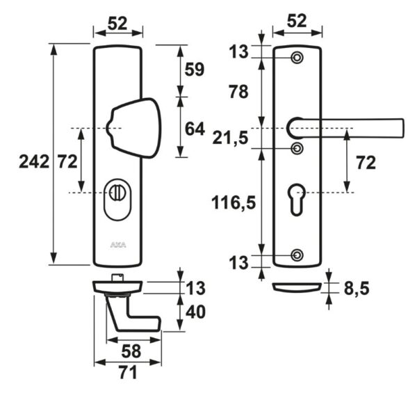 AXA veiligheidsbeslag PC72 SKG3 met kerntrekbeveiliging greep/kruk