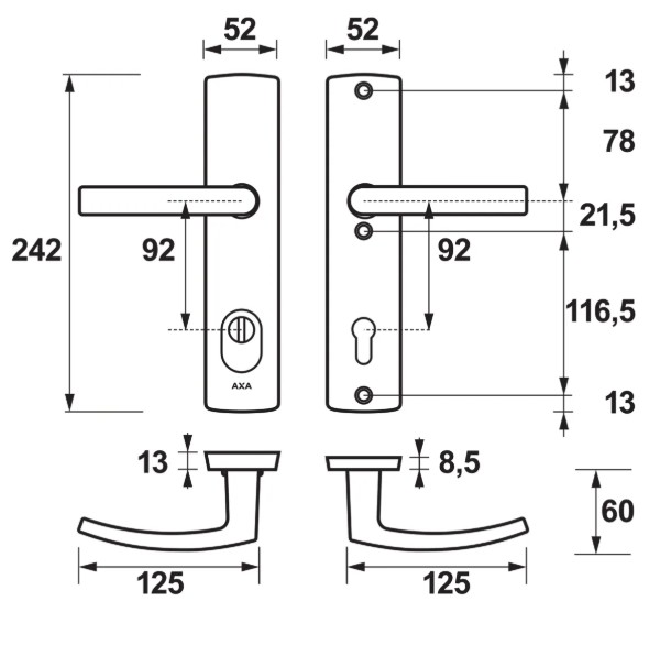 AXA veiligheidsbeslag PC92 SKG3 met kerntrekbeveiliging kruk/kruk