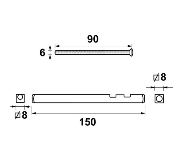 AXA krukstift + set bouten 8×150+M6x90 (3x)
