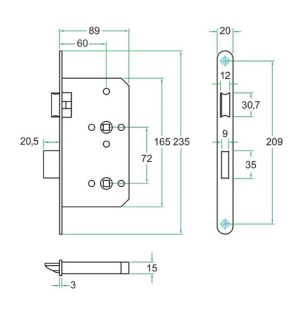- Afmetingen conform DIN 18251 (is standaardmaat voor projectsloten in Nederland & België)