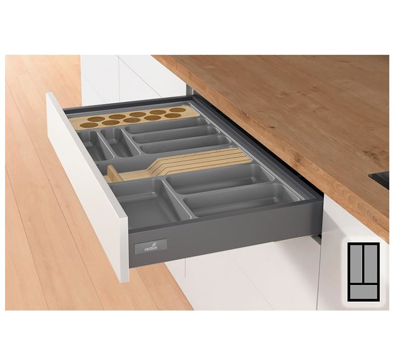 Universeel inzetbare bestekbak met een breedte van 201-250mm en een diepte van 370-440mm.