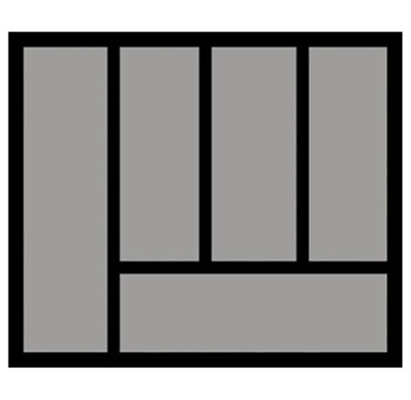 Universeel inzetbare bestekbak met een breedte van 451-500mm en een diepte van 370-440mm.