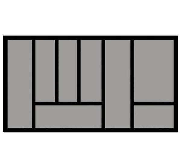 Universeel inzetbare bestekbak met een breedte van 701-800mm en een diepte van 370-440mm.