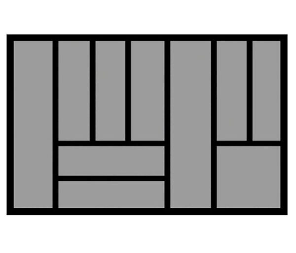 Universeel inzetbare bestekbak met een breedte van 801-900mm en een diepte van 441-520mm.