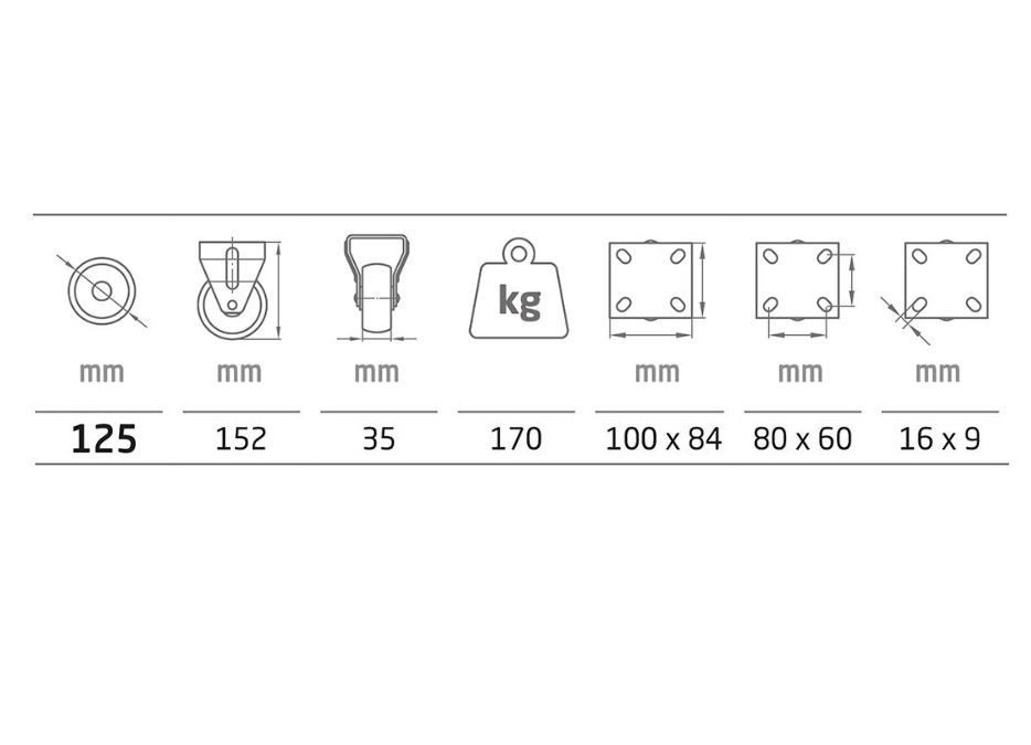 Bokwiel met bevestigingsplaat verzinkt met rode nylon wiel 125 mm
