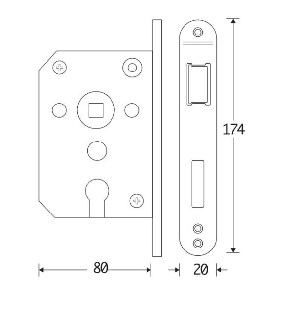 - Afmeting slotkast: 116,5 x 80,3 x 17 mm