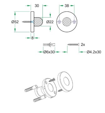 Deurbuffer wandmontage ø52x30mm rvs mat
