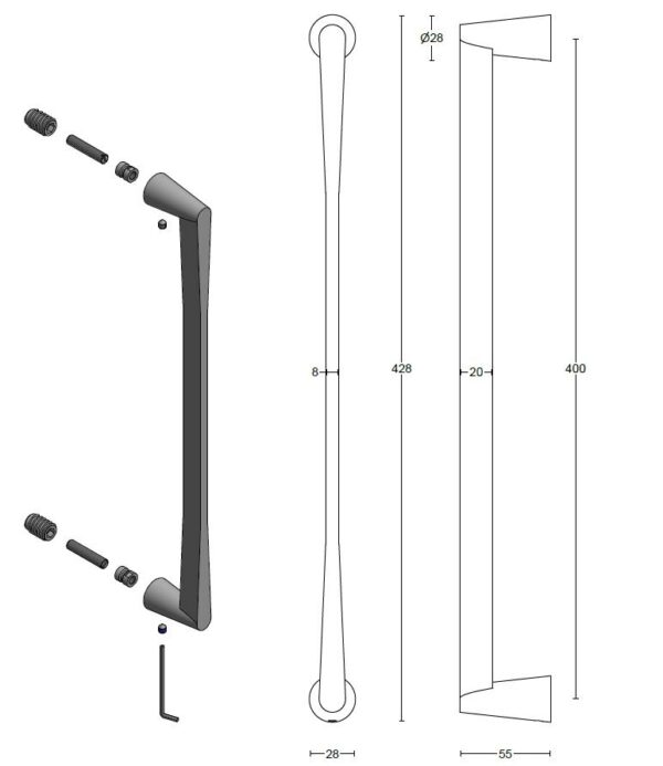 Deze massieve deurgreep is van Formani uit de serie CONE. Het materiaal is mat RVS. Bij deze deurgreep wordt een bevestigingsset geleverd voor niet-doorgaande bevestiging op houten of aluminium deuren.