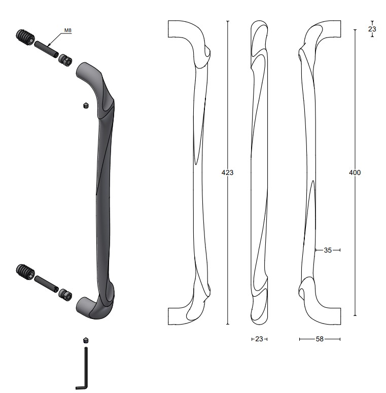 Deze massieve deurgreep is van Formani uit de serie ELEEZ. Het materiaal is mat rvs. Â Bij deze deurgreep wordt een bevestigingsset geleverd voor niet-doorgaande bevestiging op houten of aluminium deuren. Dit is een linker deurgreep, dus je pakt deze deurgreep met je linkerhand.