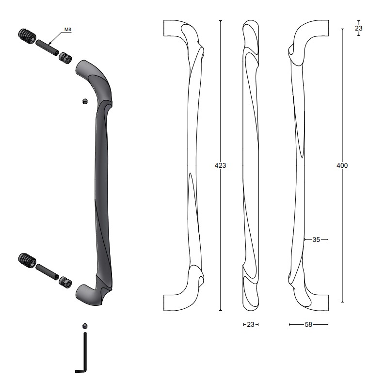 Deze massieve deurgreep is van Formani uit de serie ELEEZ. Het materiaal is rvs met een PVD licht bronzen coating. Â Bij deze deurgreep wordt een bevestigingsset geleverd voor niet-doorgaande bevestiging op houten of aluminium deuren. Dit is een rechter deurgreep, dus je pakt deze deurgreep met je rechterhand.