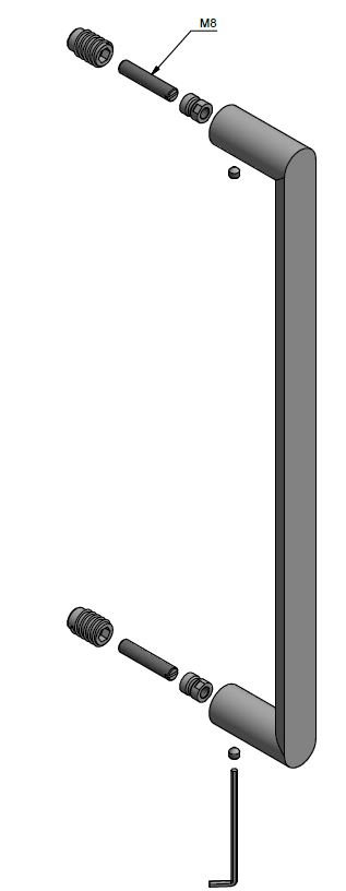 Bij deze deurgreep wordt een bevestigingsset geleverd voor niet-doorgaande bevestiging op houten of aluminium deuren.