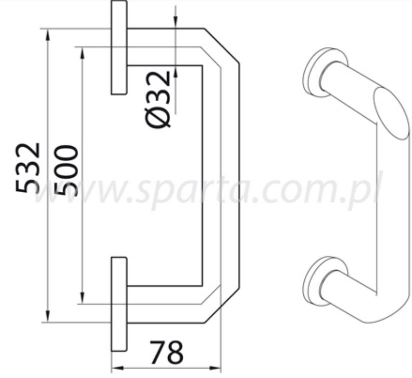 Deurgreep Rond met schuine hoeken 500 mm mat rvs