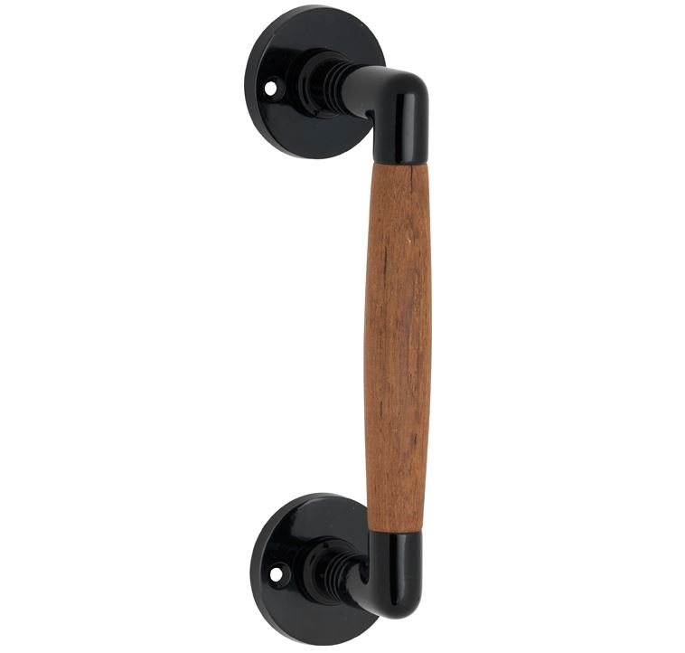 Deurgreep Ton teak rond rozet mat zwart
