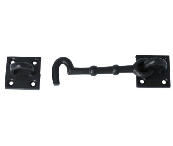 Een mooie robuuste zwarte deurhaak en vanger geschikt voor schuifdeuren. Deze kleine deurhaak is gemaakt van ijzer en met zijn authentieke uitstraling een prachtige toevoeging voor de deur. Het materiaal is van hoogwaardige kwaliteit, waarmee het een sterk en duurzaam product is. Monteer de deurhaak gemakkelijk met de bijgeleverde schroefjes.