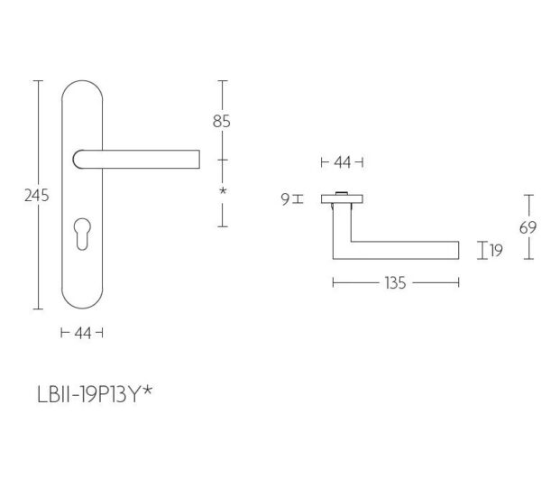 Deze deurklink is vast-draaibaar met metalen onderconstructie geveerd op schild. Het schild is voorzien van een profielcilindergat. De hart op hart maat van de deurklink tot het profielcilindergat is 55 mm. Het materiaal is rvs met een PVD mat gouden coat.
