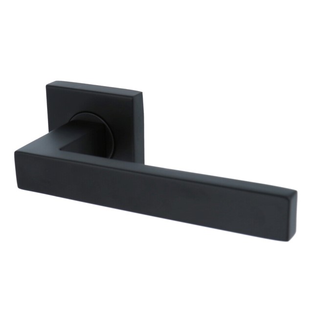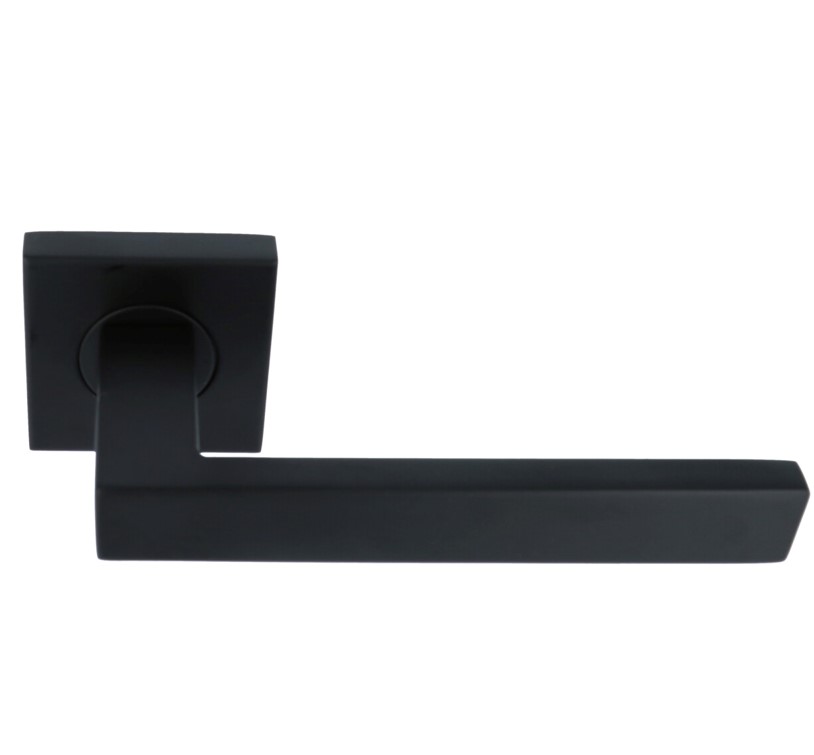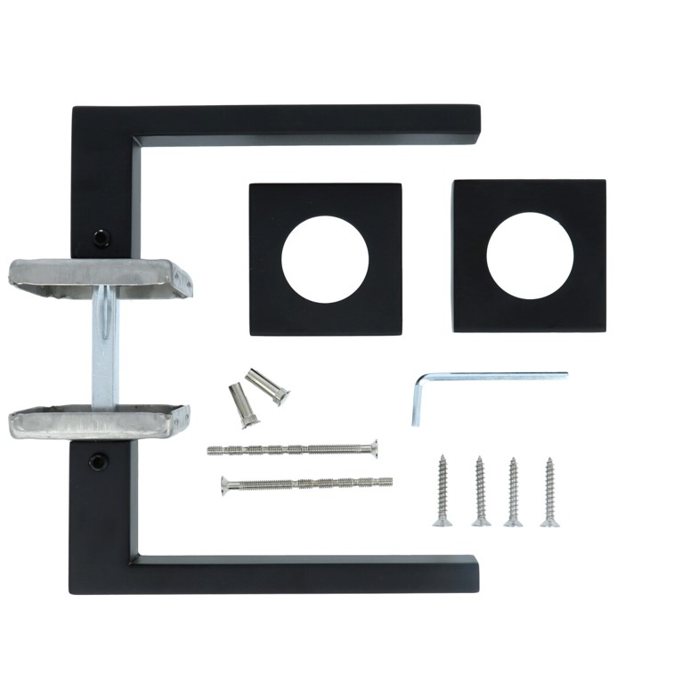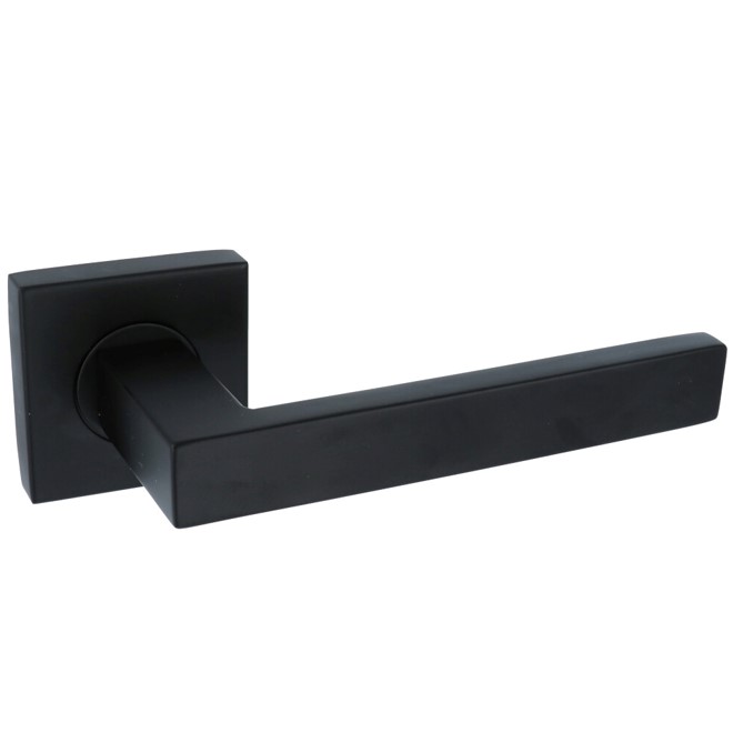Deurklink Basis Rechthoek op geveerd rozet mat zwart