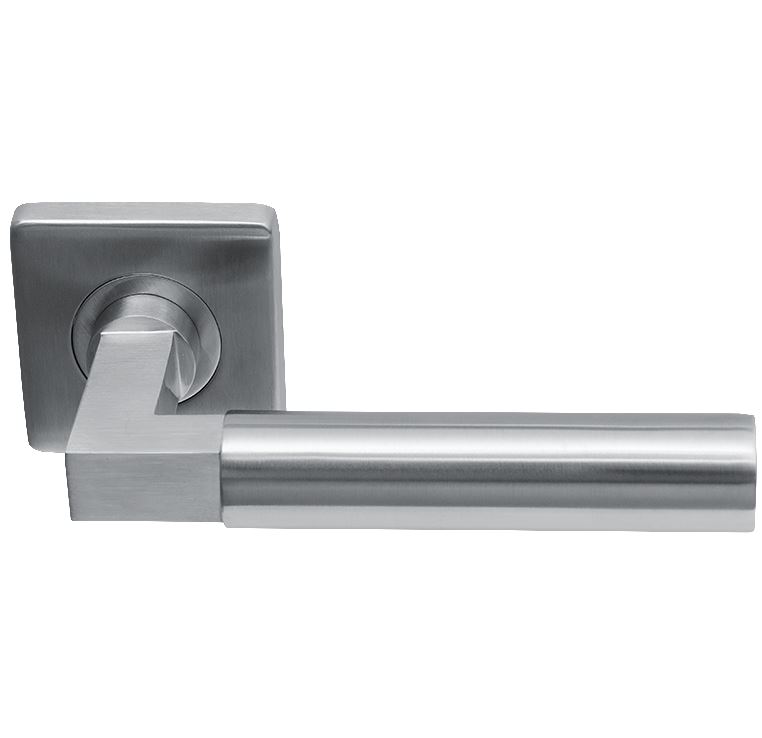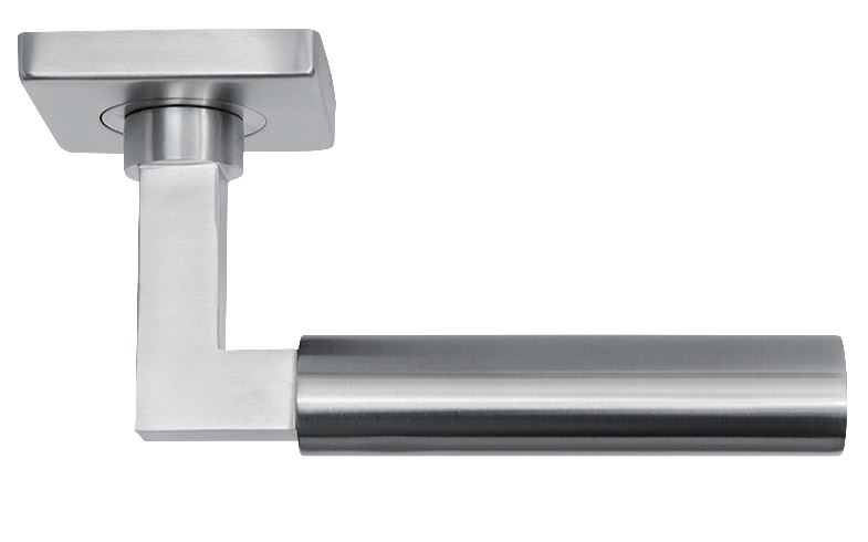 Deurklink Bauhaus op vierkant rozet massief rvs