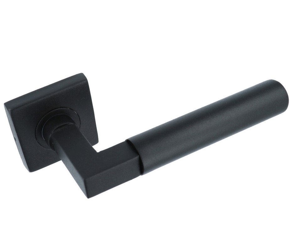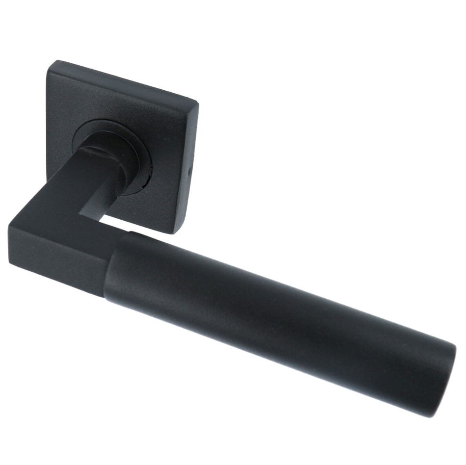 Deurklink Bauhaus op vierkant rozet rvs/zwart