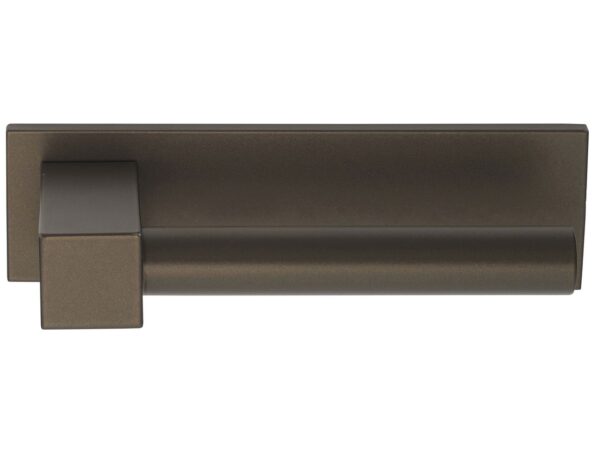 Deze deurklink is geveerd op horizontaal schild met metalen onderconstructie. Deze deurklink is van Formani uit de serie BOBBY. De ontwerper van deze deurklink is Eric Kuster. Het materiaal is RVS met een bronzen coating.
