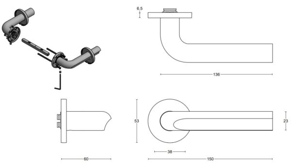 Deurklink ECLIPSE DR101-G op rozet PVD mat zwart