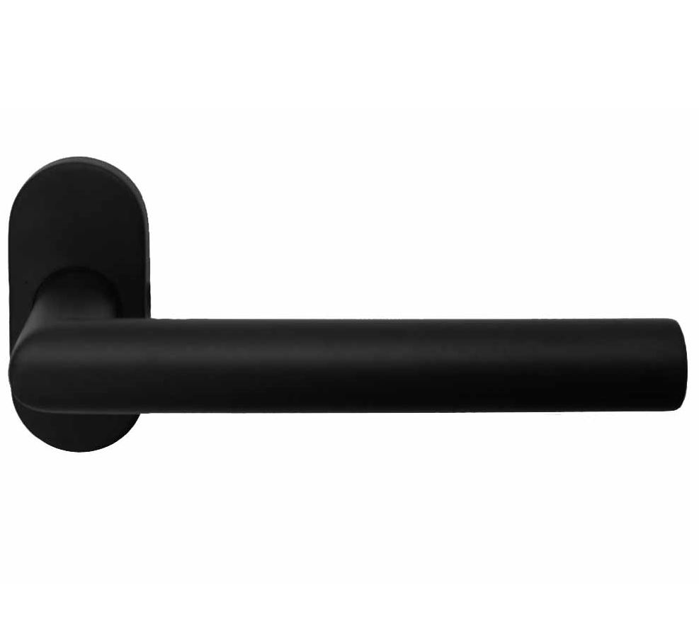 Deze deurklink met smal ovalen rozet kan gebruikt worden op deuren met smalle stijlen. Met deze deurklink op ovalen rozet haalt u een bijzonder stijlvolle deurklink in huis. De RVS zwarte deurklink op ovalen rozet is dubbel geveerd waardoor de kruk zowel naar boven als naar onder kan. De kruk heeft een moderne uitstraling maar doet het, door het simpele design, ook goed in een wat klassiekere omgeving.